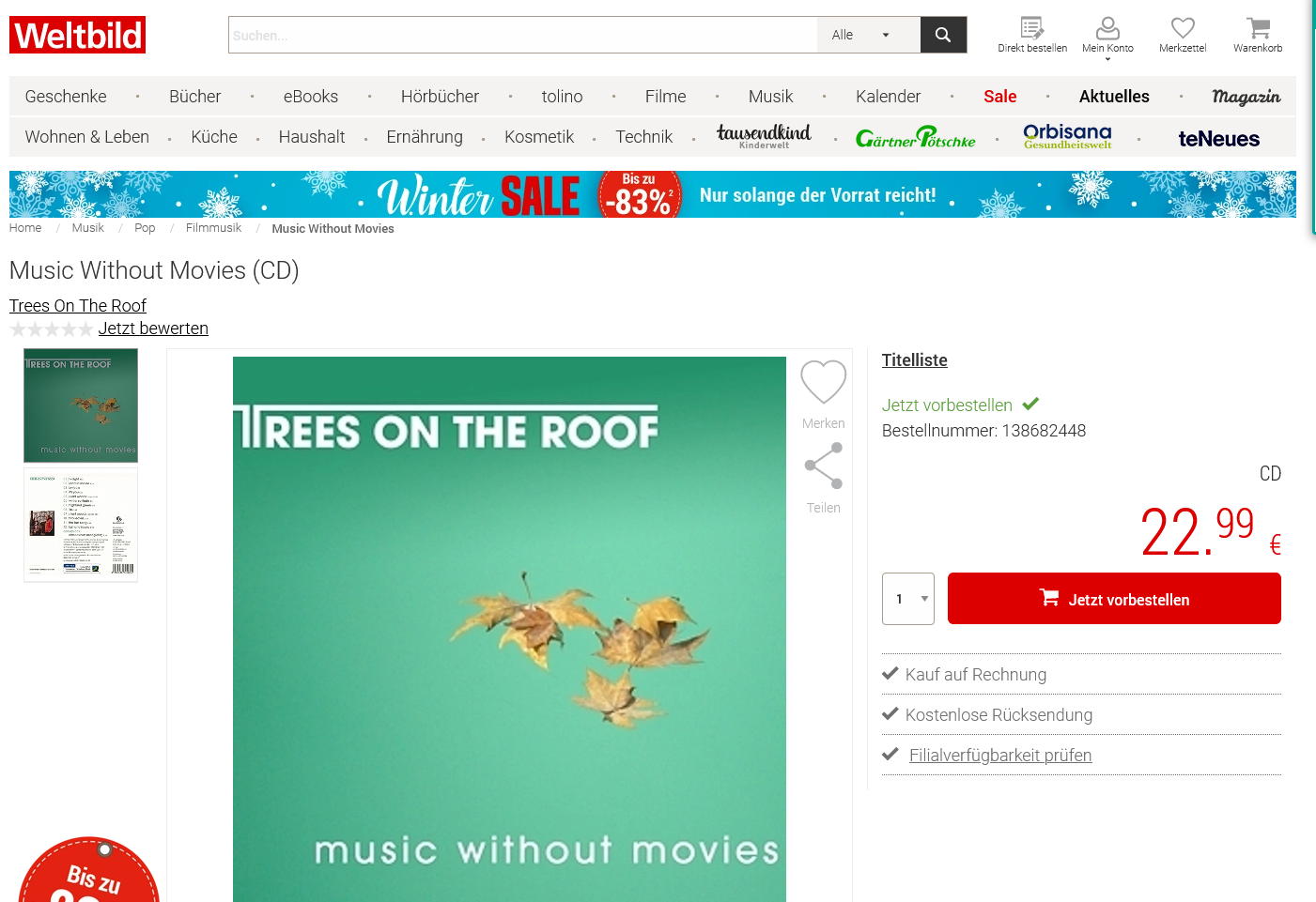 Kann man da widersprechen? Knapp 10.000 Euro konnten akquiriert werden. Und sollte uns das nicht versöhnen mit dem Ergebnis, das darüber hinaus offenbar auch dem Bedürfnis eines dafür existenten Publikums dient? Satire darf doch irgendwie auch alles, angeblich. Auch im Geflecht der Preise: Bei Weltbild gibt es die CD für 22,99 Euro, bei jpc 19,99 Euro, bei Bücher.de für 15,99 Euro und bei Amazon für 0,65 Euro (via Medimops, aber neu!) (Zur Sicherheit in dieser Galerie dokumentiert, Datum 1.2.2022.)